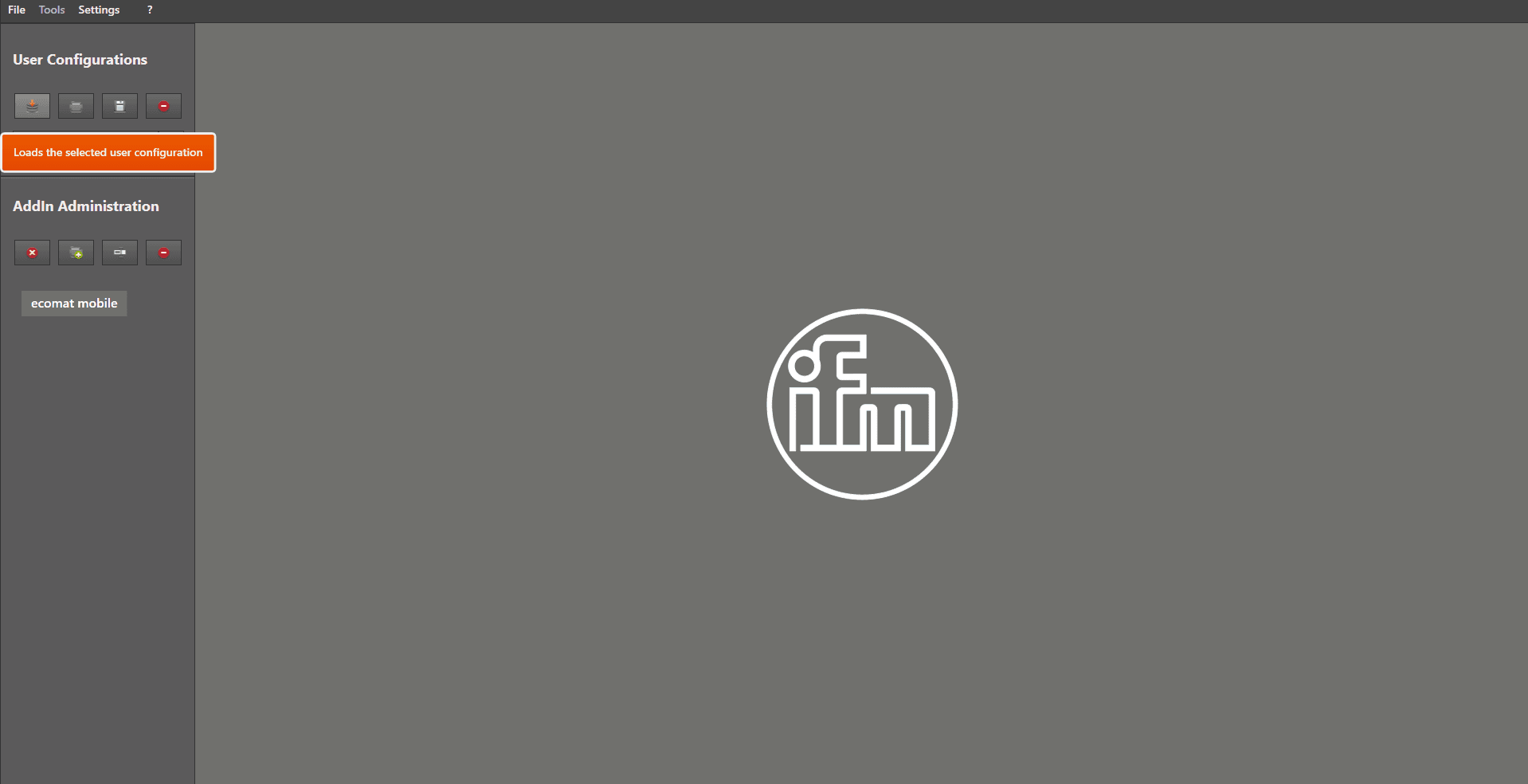 You can now load the configuration by selecting it in the dropdown menu and left mouse clicking on the load symbol .