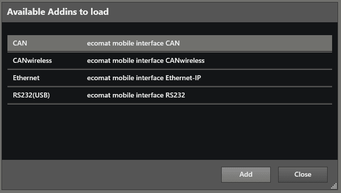 Left mouse click on “ CAN ”, then left mouse click on “ Add ”.