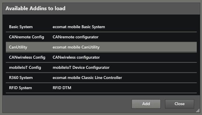 Left mouse click on “ CanUtility ”, then left mouse click on “ Add ”.
