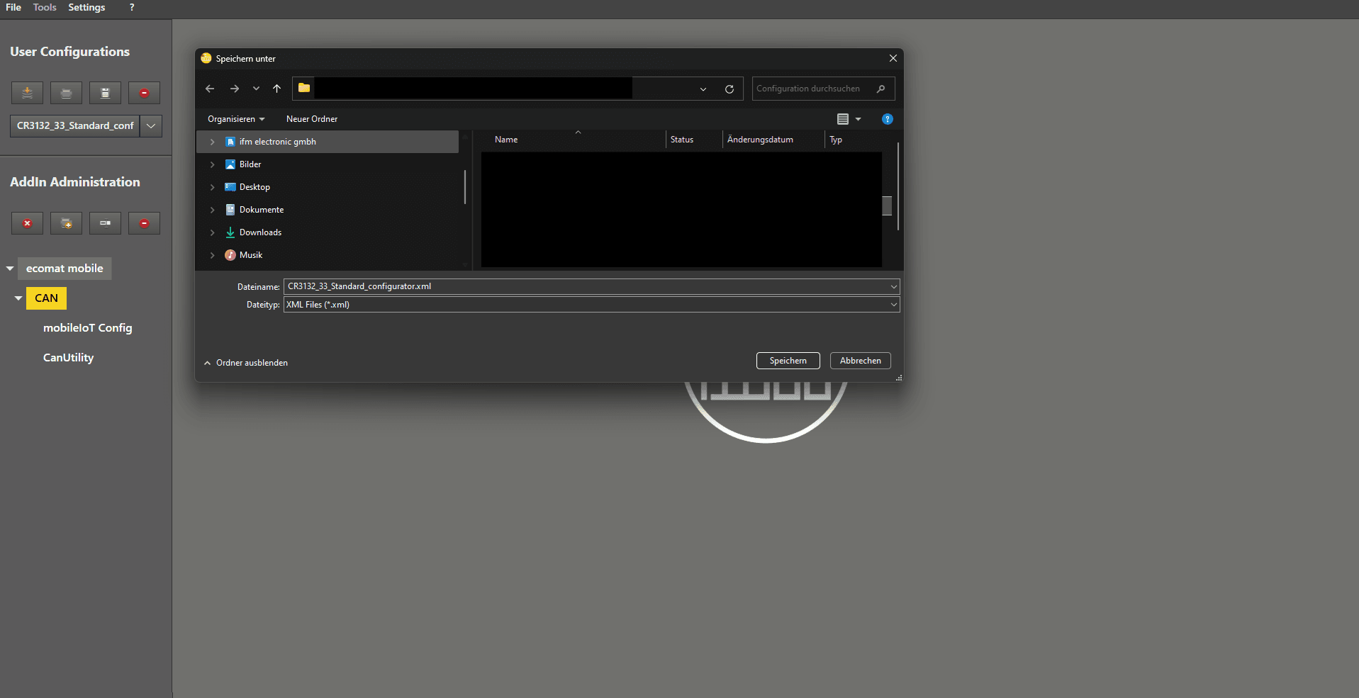 Choose the location where you want to save your configuration.